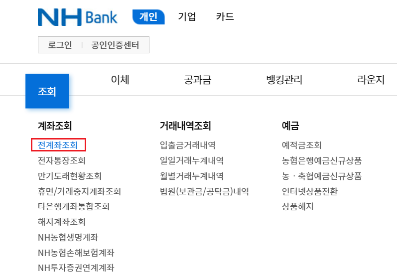 넷째! 농협 인터넷뱅킹을 이용합니다.