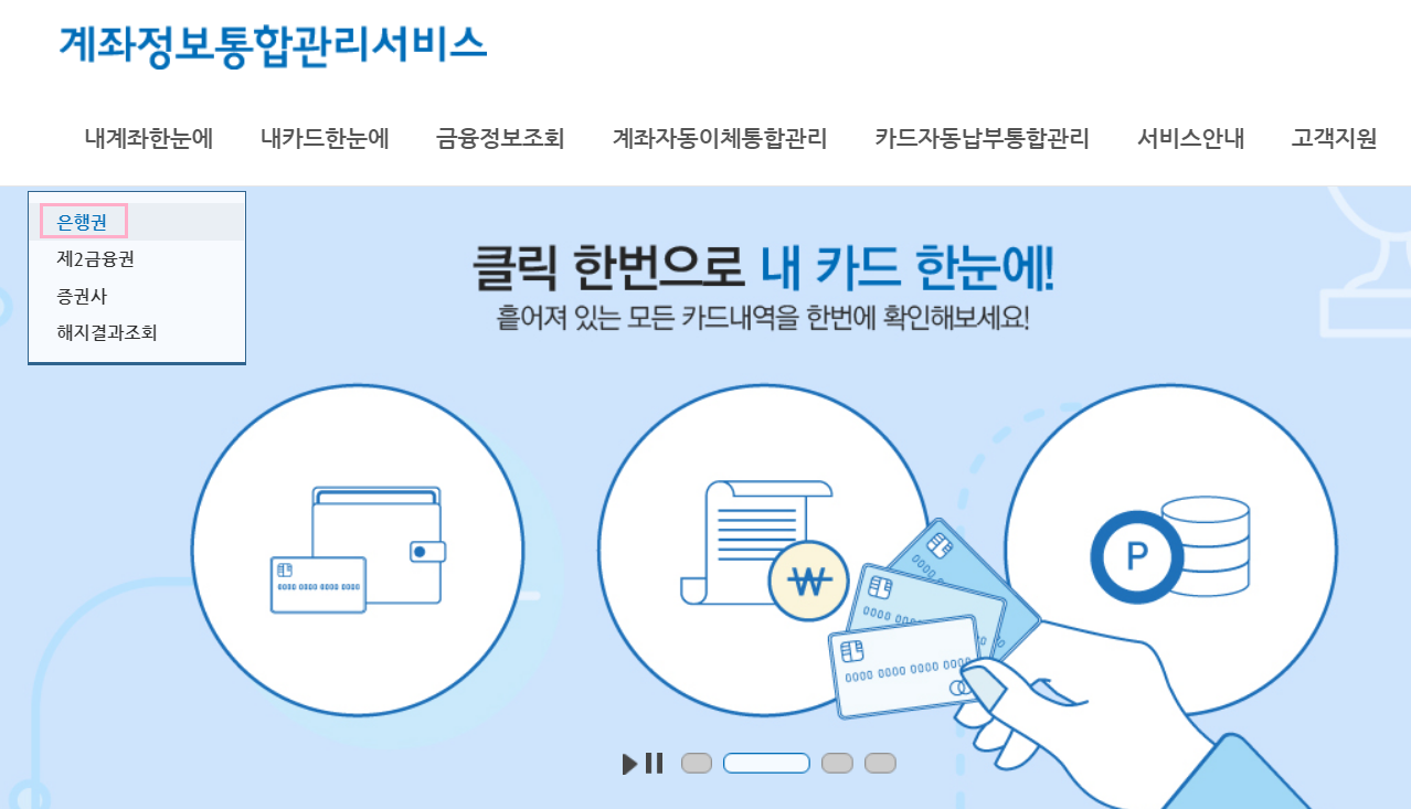 셋째! 계좌정보통합관리서비스(어카운트인포)를 이용합니다.