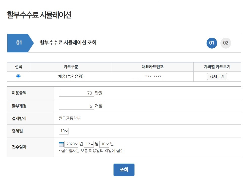 | 농협카드 할부 이자 조회 방법 (0) | 2020.12.08 |