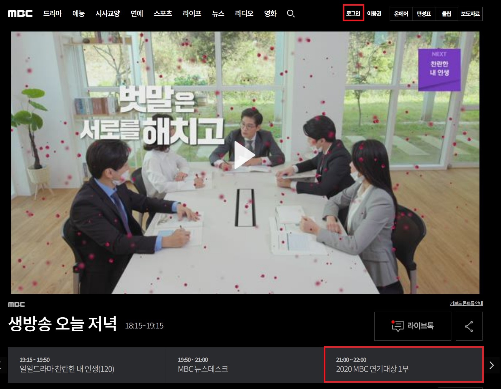 로그인 후 2020 MBC 연기대상을 시청합니다.