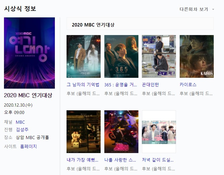 ㅣ2020년 MBC 연기대상 올해의 드라마 후보작