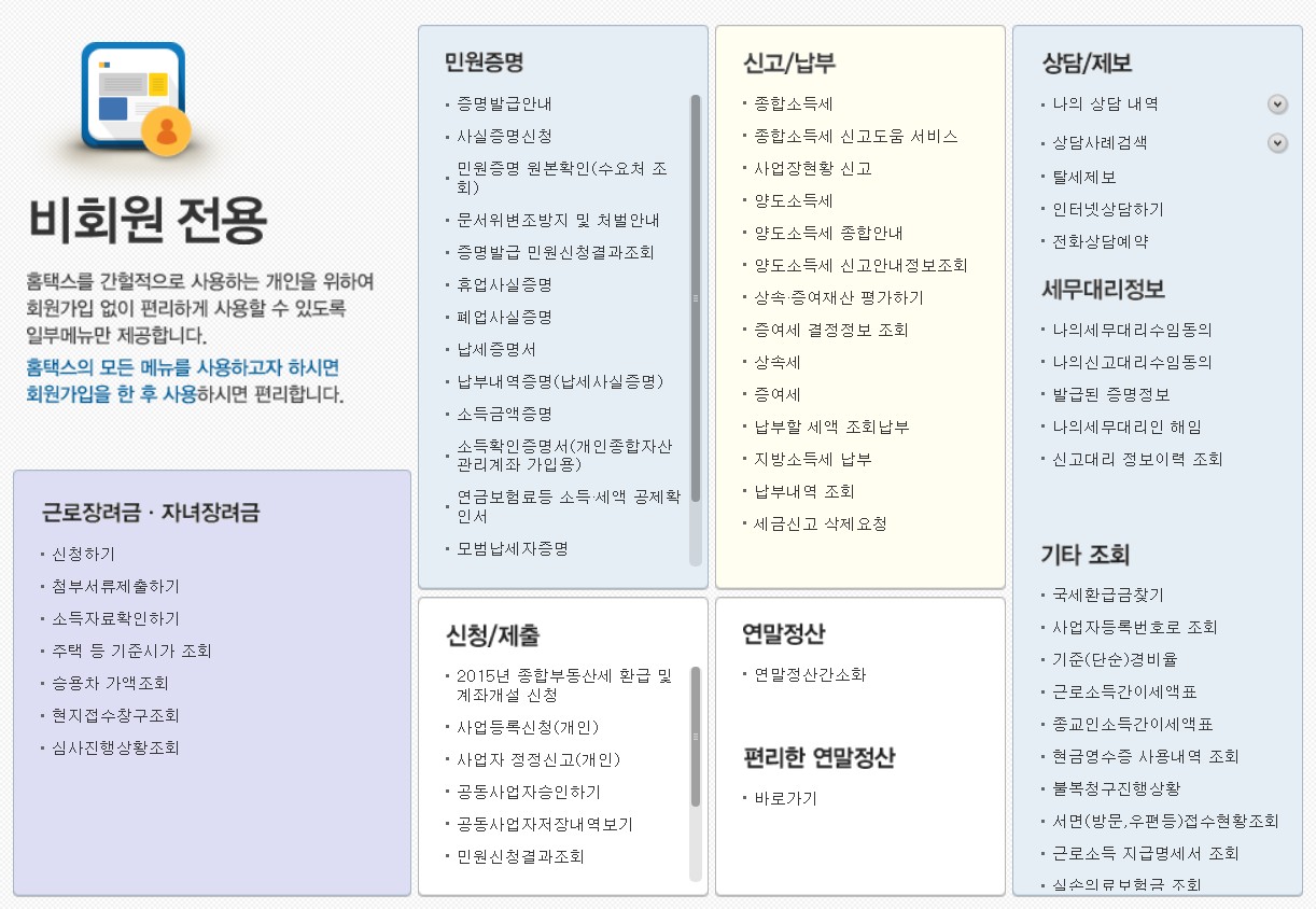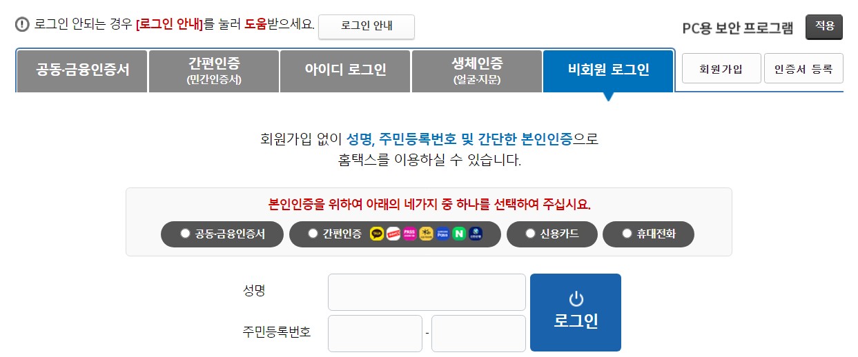 국세청 홈택스 비회원 로그인 방법